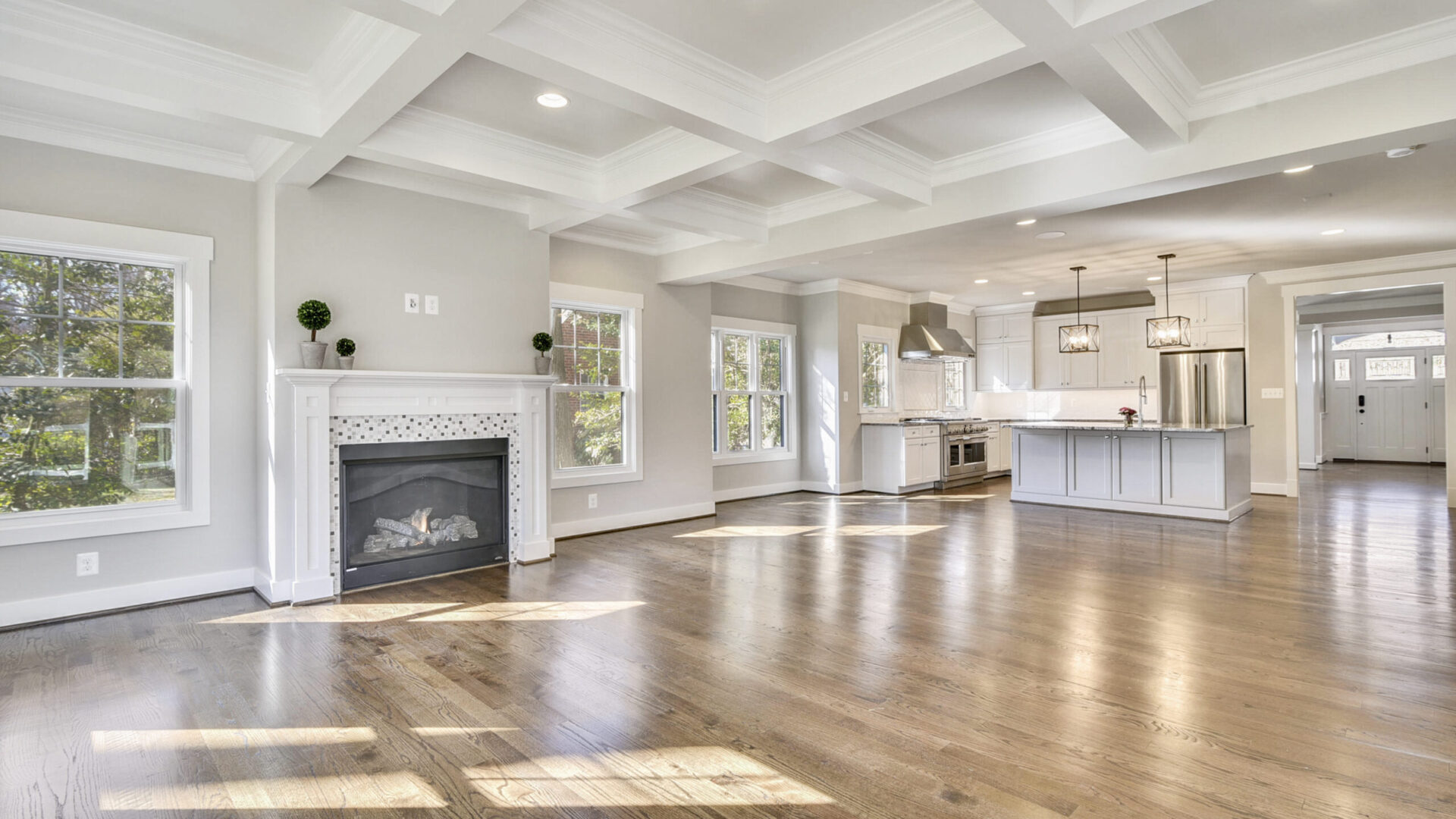 In most of our spec homes, we’re adding additional crown molding to the entire first floor. It already comes standard in the foyer, living room, dining room and the 2nd floor hallway and adding it to the rest of the 1st floor really transforms the feel of the home. It is a small detail, and it is not expensive to do, but it makes a big impact.