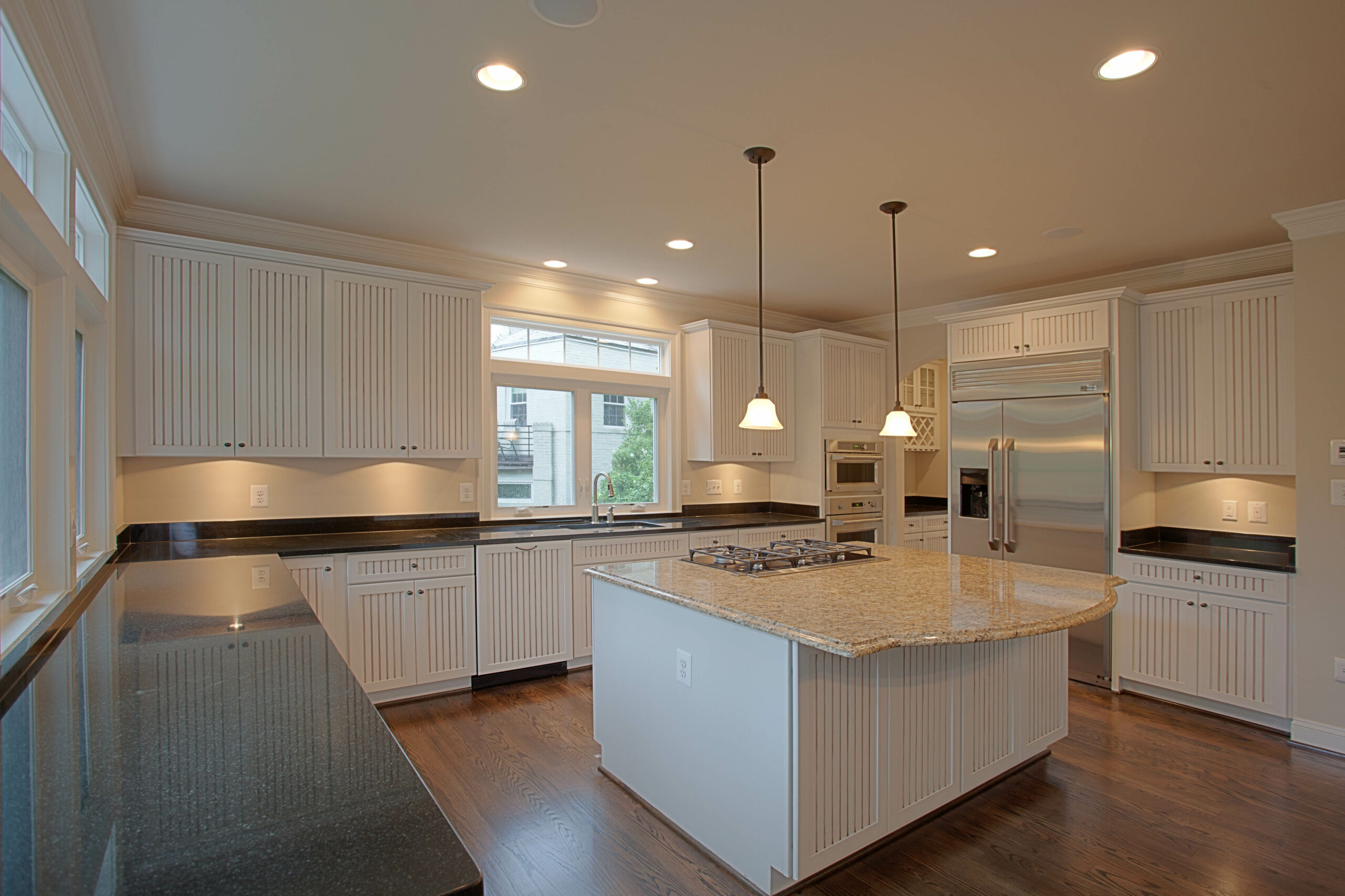 I decided to choose a different colored counter-top on the island in my home. I love having the light colored top on the island (hides the fingerprints!) and the black granite on the perimeter.