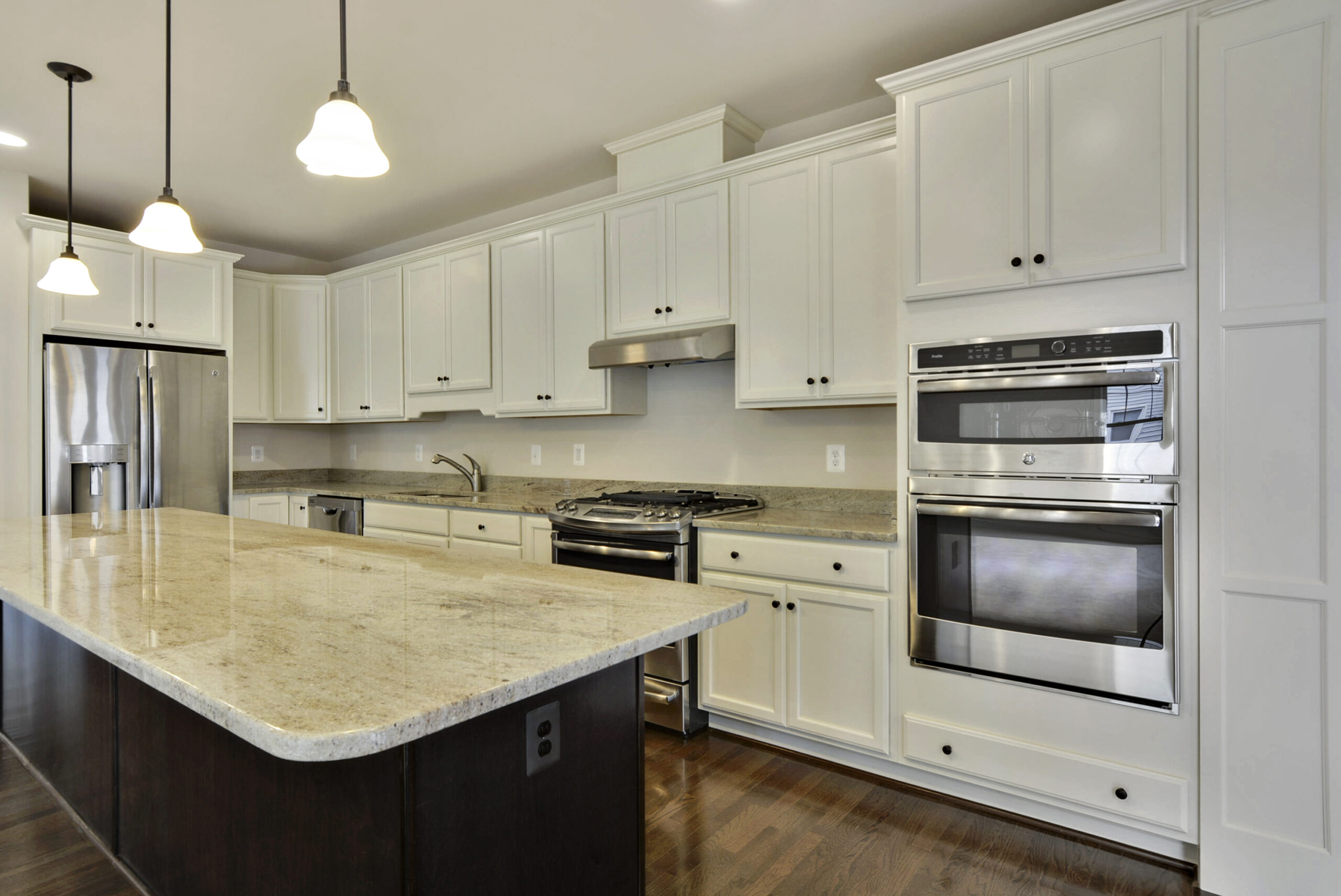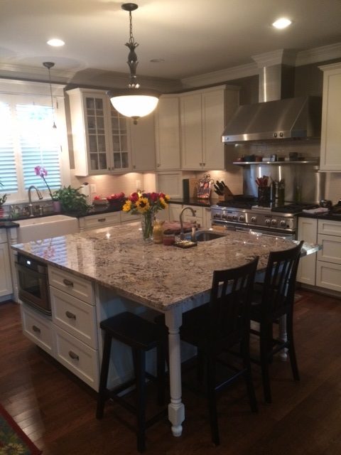 When choosing the colors for your kitchen, don’t feel compelled to choose the same cabinet and top for the island. Choosing a different colored cabinet or counter top for the kitchen island is on trend!