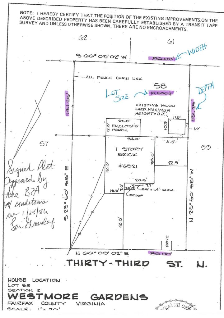 A good realtor marketing a home for tear down purposes will have a plat at the ready. If for some reason they don’t, you can contact the local zoning office and request one.