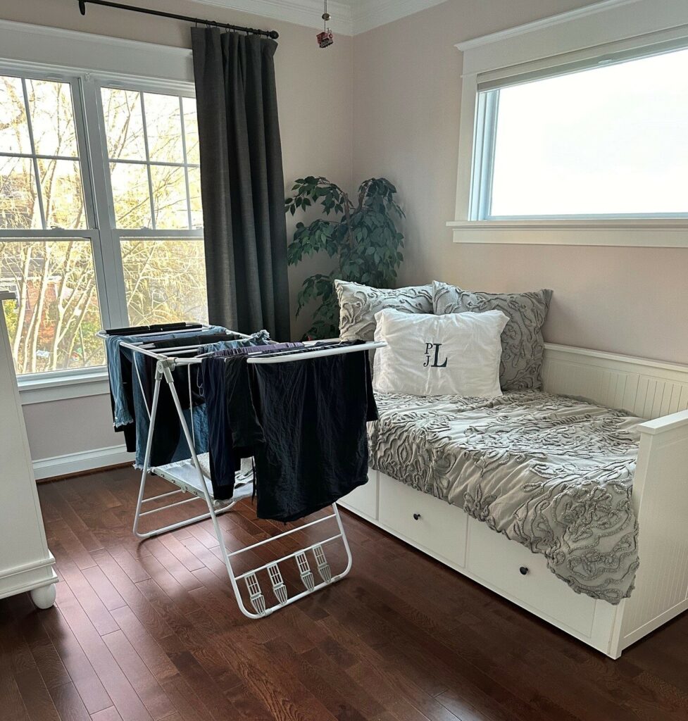 If you remember from the first post in this series, I decided to repurpose a room that was primarily being used to hang my air dry laundry. It was previously a guest room, then the nursery, and then Andrew’s bedroom before he started bunking up with Nate several years ago. Since then, it’s been setup as a second guest room that barely got used (except by said laundry).
