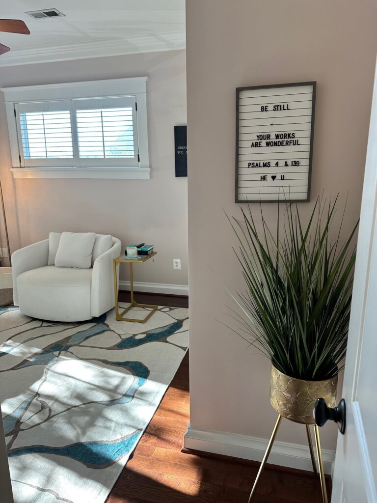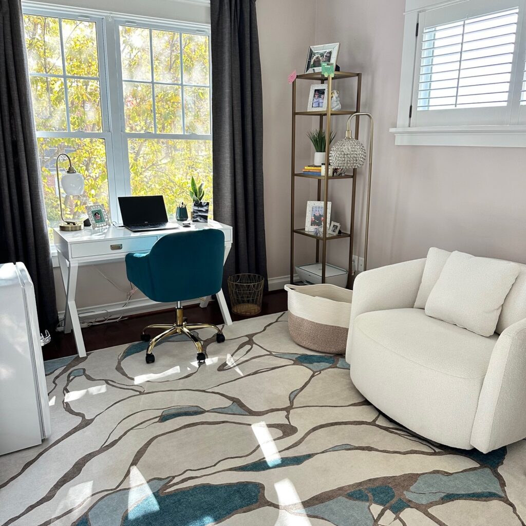 I decided on one random Monday to repurpose this room for me, and just me! I’ve been using this space for over a year now, and it has been my home office, my gym, my quiet space and my retreat.