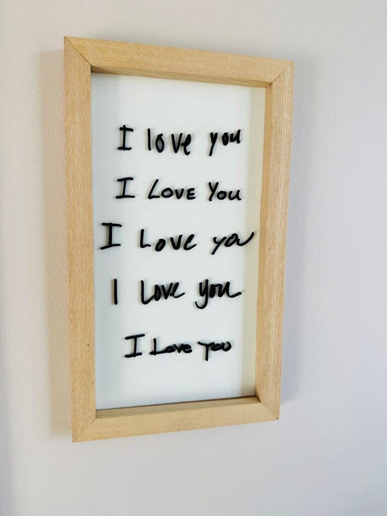 Each one of the I Love You(s) is “written” by someone I know, so it is their actual handwriting. It is one of the most meaningful gifts I’ve ever received. And it reminds me how much I am loved!