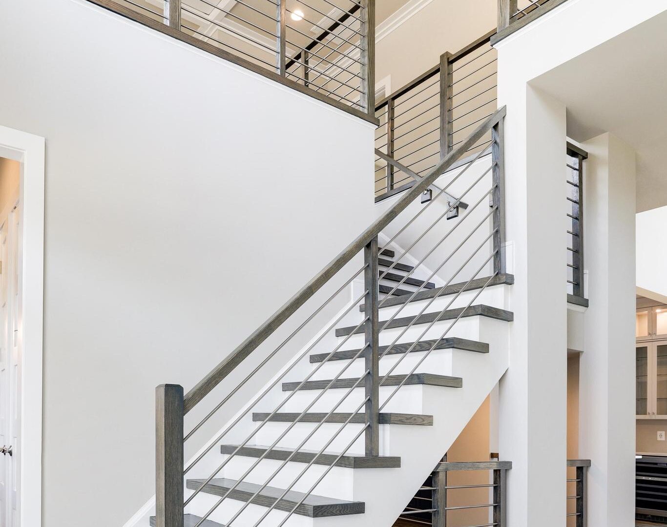 When planning the interior trim package, you should incorporate things like modern stairs and rails, and simple trim around windows and doors. Gone are the elaborate crown molding and trim popular in traditional homes.