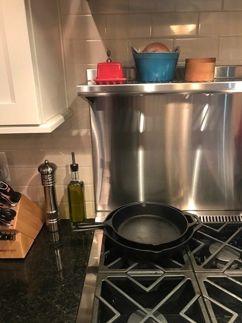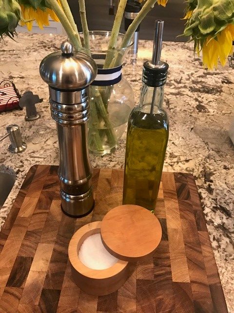 I always have my extra virgin olive oil and fresh salt & pepper on hand when I’m cooking. I keep them near the stove so they are always easy to reach for when I need them.