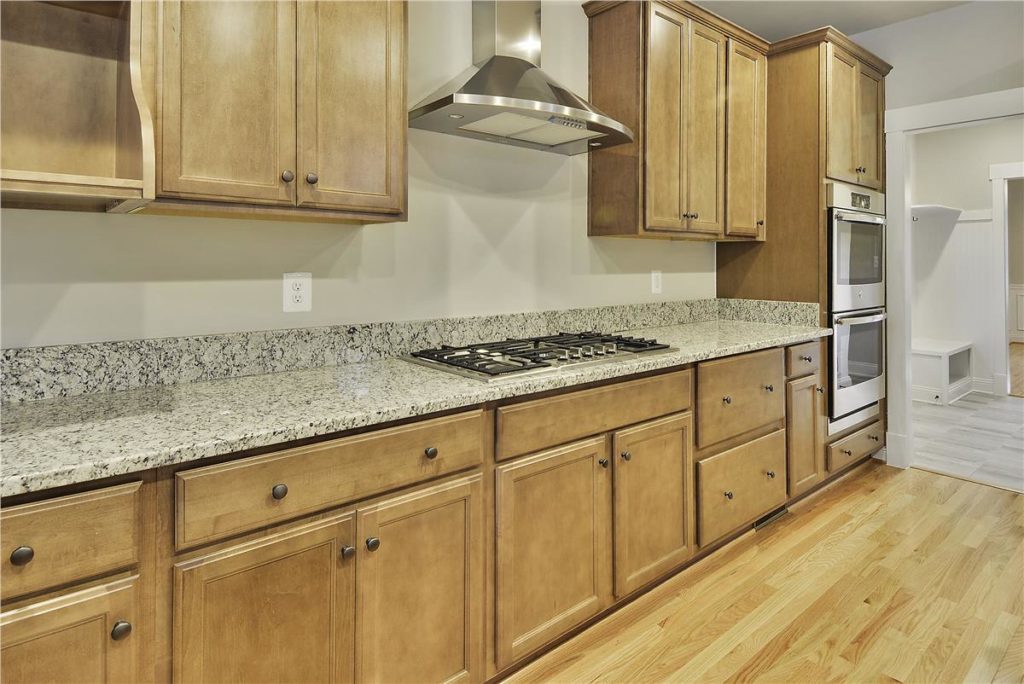 The maple kitchen cabinets (stain is Rye) are made by KraftMaid (an NDIncluded Signature Feature!). This cabinet is awesome – dovetail drawer construction, full extension drawers, thicker shelves, soft close doors/drawers – the list goes on! And all included in our base pricing.
