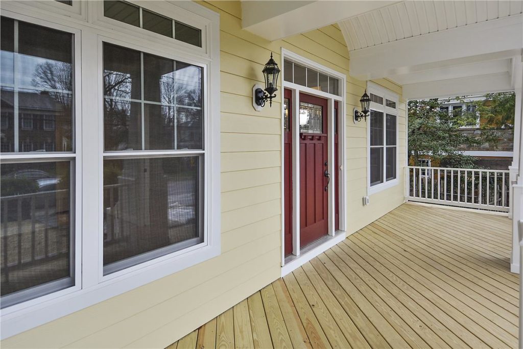 The front door is painted Richmond (Red!). Love how it looks against the siding.