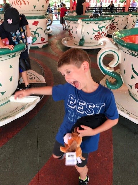 The boys have started getting into the rides which is super fun for Paul & me. A family favorite? The teacups – Andrew and I love them. Paul and Nate, not so much.