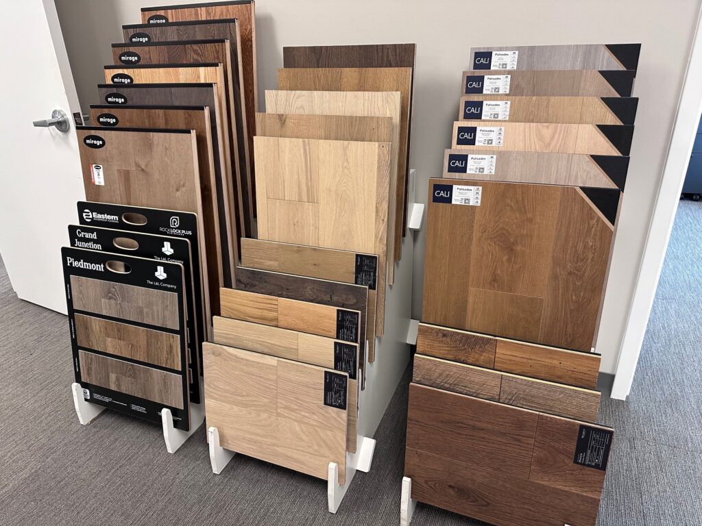 Whether you are looking for solid wood or an alternative wood product, we would love to show you all the great options we offer for wood flooring. Every flooring selection you see in this photo is included in our base pricing…