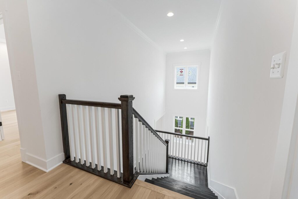 The secondary foyer opens up to the upper hallway and stairs.