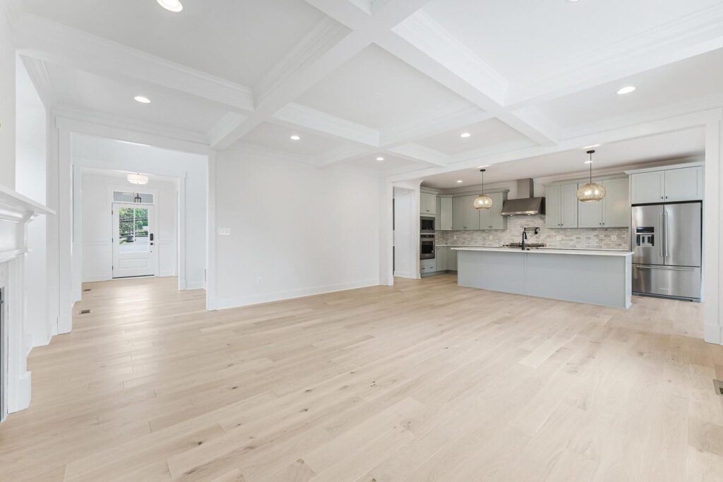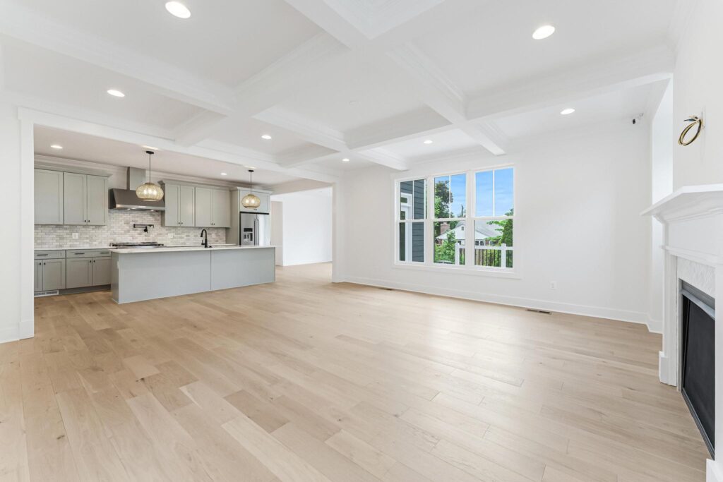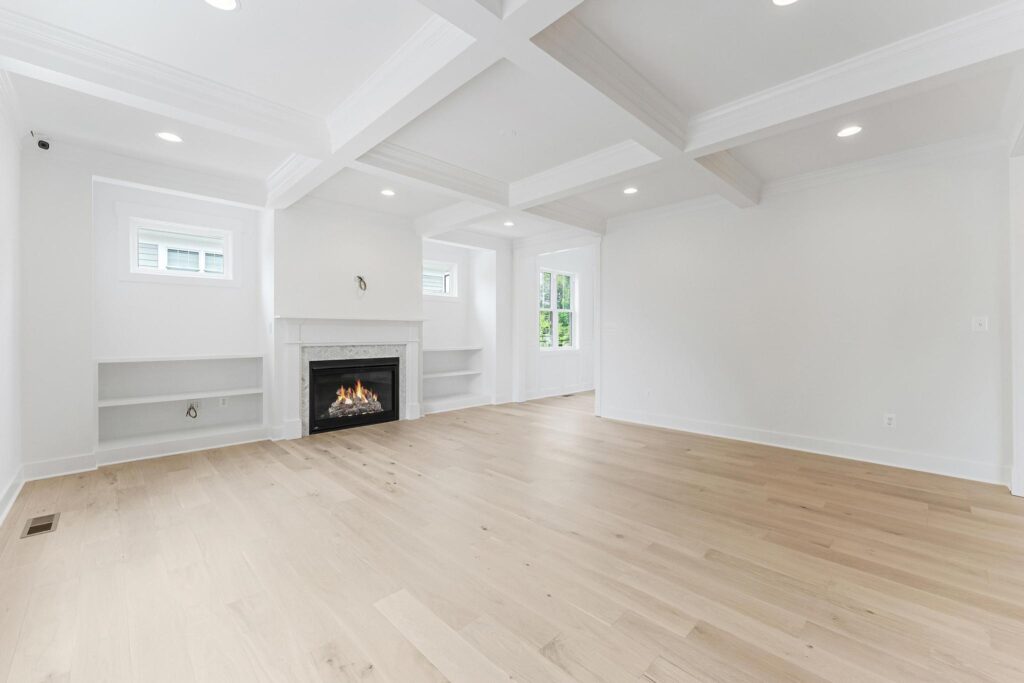 We added the coffered ceiling and built-in shelves at the fireplace to this home. If you’re looking for a way to up the look of your home, adding custom trim features is the way to go. It is incredible how it changes the feel of a room.