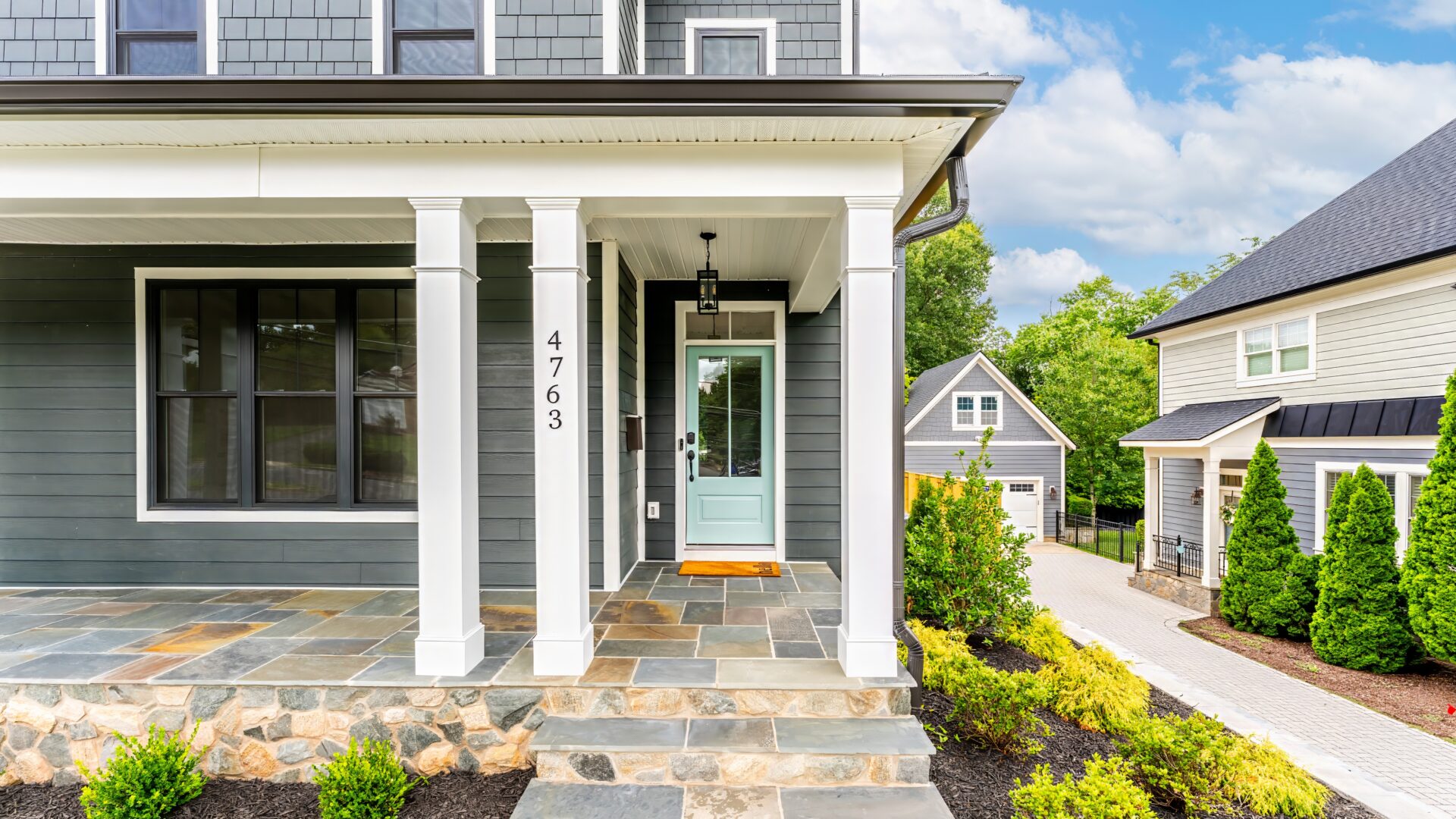 The front door is off-set which is a totally different look from most of our designs., but this unique design element totally works!